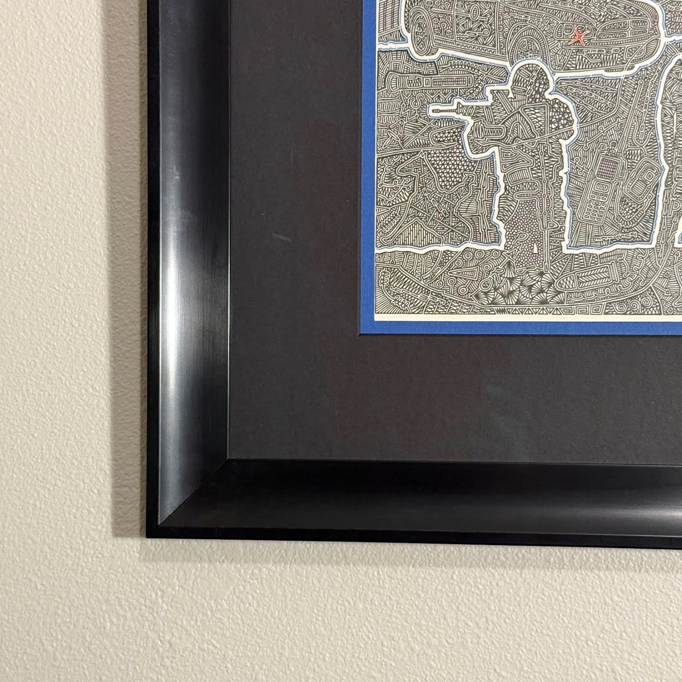 Framed: 19" x 22" w/ 2.25" acid free double matting and UV glass.