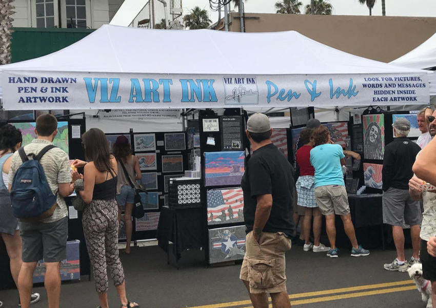 In 2013 he opened the Viz Art Gallery in Carlsbad, CA where he featured over 20 local artists. He closed his gallery January 30, 2020 to focus on custom art, wholesale, art consulting, his podcast (Viz Art - The Business of Art) and his kids. Viz's goal is to share his art and story with as many people as possible. He speaks at different events and schools throughout the country to help motivate and inspire the youth.